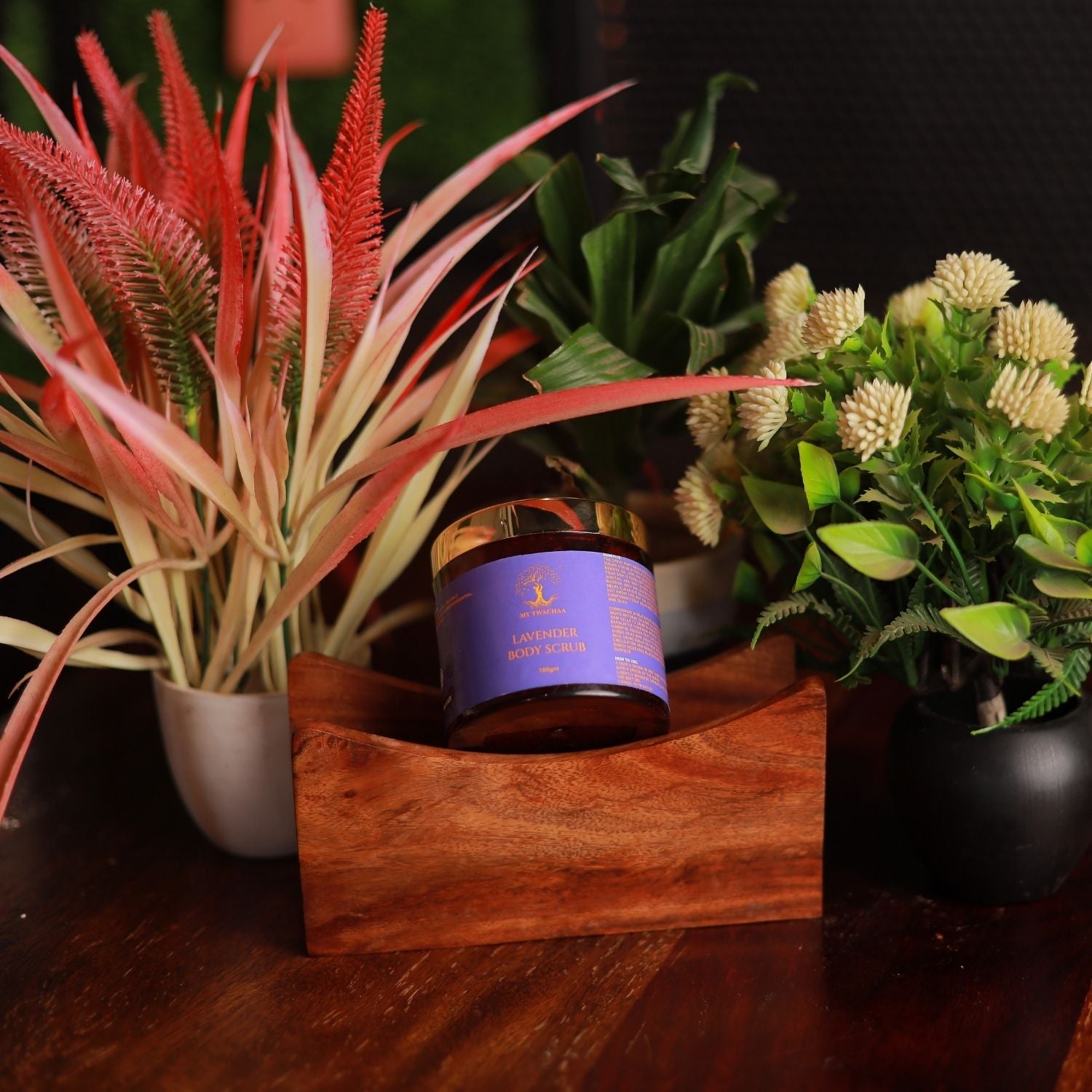 1. Take a spoon of indian rose body butter and mix it with a spoon of the scrub.