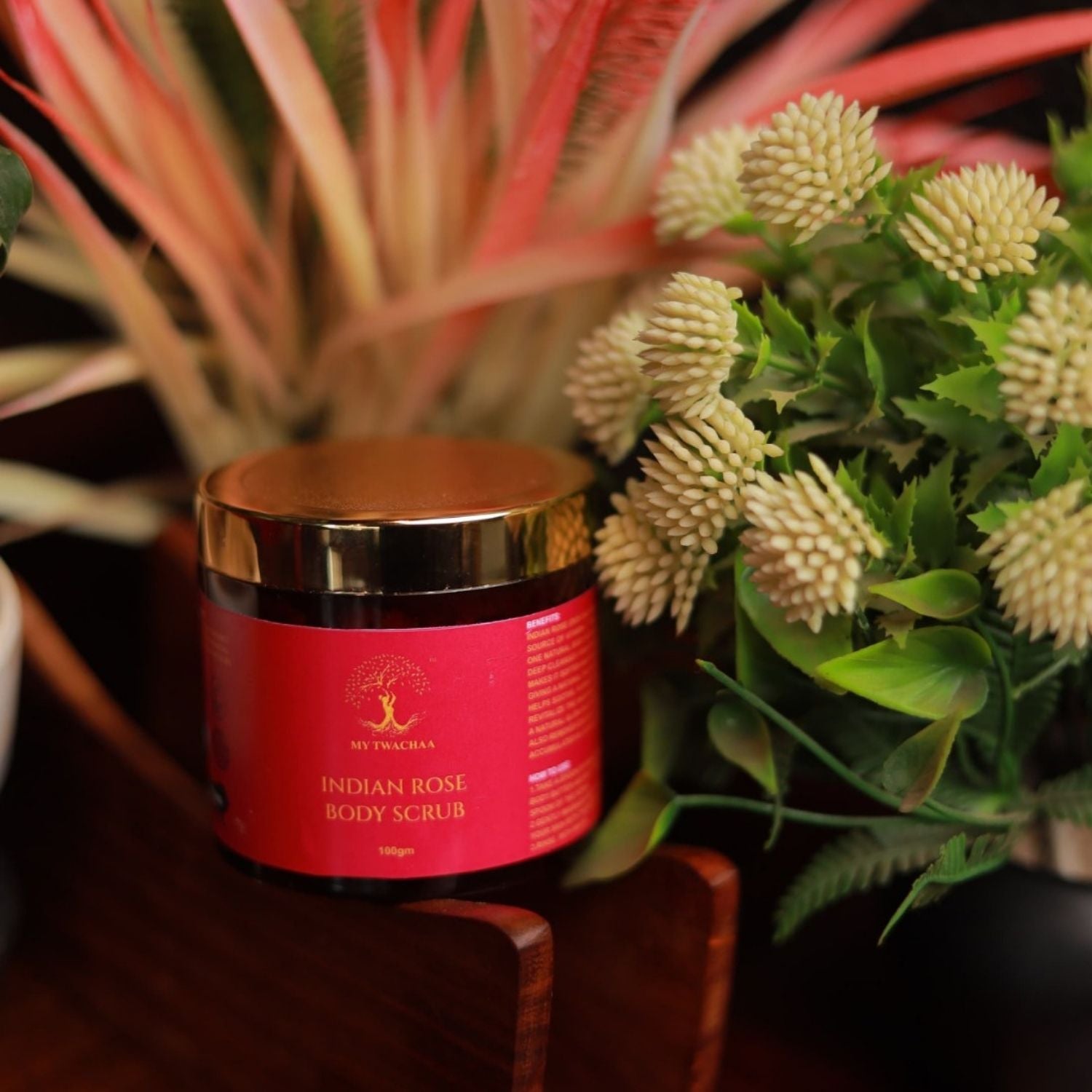 • Follow with your Mytwachaa Rose Body Butter for a deeply nourished, silky finish.Use 2–3 times a week for naturally polished, soft, and radiant skin — a floral ritual your body will look forward to.